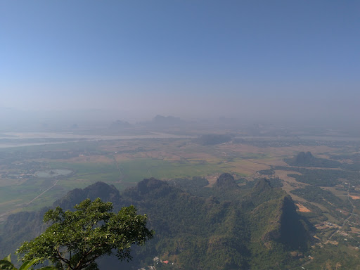 Also von Anfang an: wenn ihr aus Hpa-An kommt, nehmt die Thiri Road runter in den Süden, bis ihr die "Kreuzung" am Lumbine Buddha Garden erreicht. Dort ist der Mt Zwegabin auch ausgeschildert. Ihr biegt links ab und folgt der asphaltierten Straße (man kann auch einige Meter vorher schon auf einer Schotterpiste links abbiegen), bis ihr ein großes Tor erreicht, wo man euch um 4.000 Kyat erleichtert. Danach geht es eine Weile weiter geradeaus und ihr erreicht irgendwann eine Art Platz, wo ihr euren Roller (so ihr denn eigenständig anreist) abstellen könnt. Ihr lauft dann weiter geradeaus, bis ihr ein Tor erreicht (es führt davor eine asphaltierte Straße nach links ab), das ihr durchschreitet. Dann wollt ihr euch rechts halten und durch ein weiteres Tor laufen (4-5 rote Treppen hoch, Tor von goldenen Säulen getragen). Die Chancen stehen gut, dass ihr dann an einigen schlafenden Mönchen vorbeilauft. Nachdem ihr die Häuser links und rechts hinter euch gelassen habt lauft ihr eine Weile einen Weg geradeaus, der von unzähligen buddha Statuen gesäumt ist. Am Ende dieses Weges beginnt dann die Treppe, die euch hinauf auf den Berg führt. Ab diesem Punkt kann dann (was die richtige Route betrifft) eigentlich nichts mehr schief gehen.