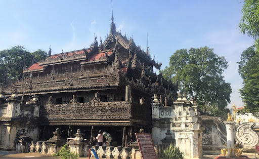 Shwenandaw Monastery This monastery is known as Shwe Nan Daw Kyaung or Golden Palace Monastery.It is commonly called as Shwe Kyaung(Golden Monastery), since the whole building was heavily gilded.This monastery had originally been part of the palace complex of Amarapura, and was shifted to Mandalay to become the royal apartment of King Mindon. The bed chamber of King Mindon has been used as the part of it. It was in that chamber King Mindon breathed his last after the prolonged illness.King Thibaw, who succeeded his father King Mindon had if dismantled after the death of his on 1 Oct 1878; and with the materials mainly obtained from it he built this monastery at a cost of circa kyats 120000. When the construction of the building was completed on 18 November 1883 he dedicated it to the Buddhist Order as a monastery on 31 October in the same year. This monastery has neither a phaya-saung ( Buddha Image Shrine Room) nor a baw-ga saung(Store Room).The whole building was heavily gilt and adorned with glass mosaic and exquisite wood-carvings. The building has considerable deteriorated but the carvings within it, especially the Ten Great Jataka scenes remain well preserved. On the outer walls can still be seen the mythical animals, dancing figures and floral design carved in bold relief. Shwe Nan Daw Kyaung is famous because it is the only palace building which left from the world war II destruction in which the Royal Palace was burnt down in March 1945, and also the 19 th century typical Myanmar Traditional wood carving. Credit;...