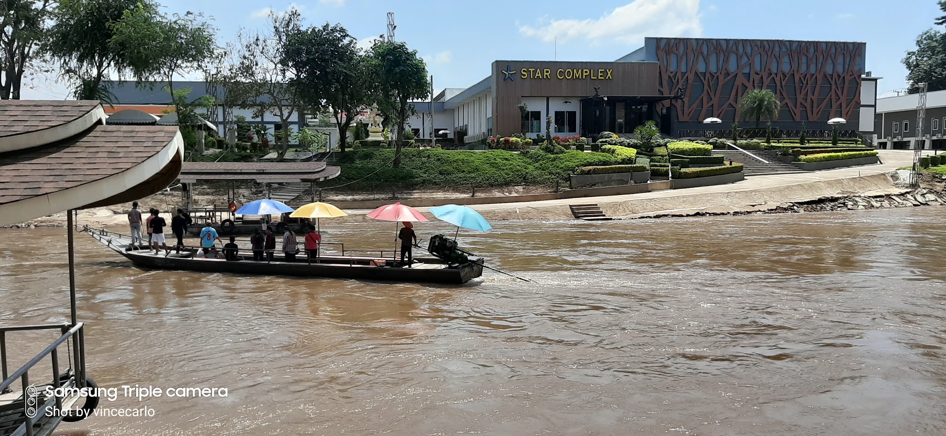 川の向こう側がミャンマーで、大きな建物がカジノ。川には渡り船...... そう言うことです。