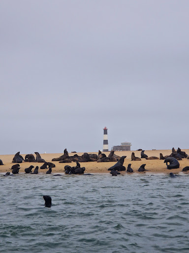 Early in the morning, we started in Walvis Bay and were taken by boat to Pelican Point. The boat ride itself was an amazing experience, with some unexpected surprises that made the trip even more special. Once we arrived, Mola Mola Safari provided us with waterproof clothing, and we met Andreas, our tour guide for the day, who explained everything about the kayaking tour.