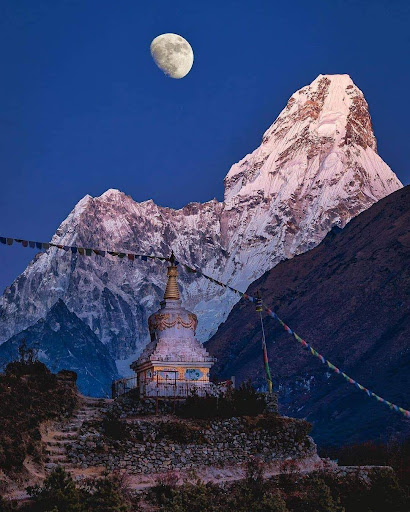 Situated at a distance of 162 km north of the provincial capital of Biratnagar and 152 km northeast to Kathmandu, Ama Dablam is the third most popular Himalayan peak for permitted expeditions. The most popular route by far is the Southwest Ridge (right skyline in the photo).Prior to a 2006 avalanche, climbers typically set up three camps along the ridge with Camp III just below and to the right of the hanging glacier, the Dablam. Any ice that calves off the glacier typically goes left, away from the camp. However, after the avalanche, climbers now prefer to set just two camps to minimize risk. A climbing permit and a liaison officer are required when attempting Ama Dablam. As with Mount Everest, the best climbing months are April–May (before the monsoon) and...