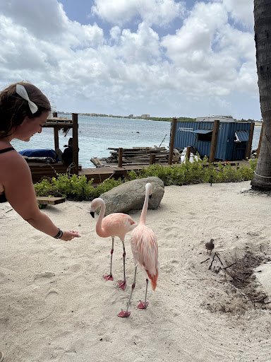 As a kid, I dreamed of coming to Aruba just to meet the flamingos on this island, and while seeing them was wonderful, I learned that they are actually kept in captivity and they just can’t leave. I hope this changes in the future to allow for a more natural habitat for these beautiful birds. I didn't want to bother the flamingos too much, it was so nice to see them roaming around freely. I also hope the island provides better food for them in the future instead of dog food that tourists pay for. Seeing the iguanas enjoying a giant bucket of fresh fruits for lunch all together made me super happy. Small adjustments could...