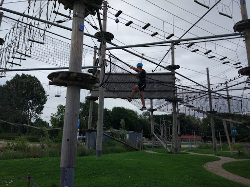 When we first got here we had some fun on the courses with 1 or 2 ziplines each on them. But as we kept going there was a lot of repeated courses and it got tiring and boring. After we were so excited to go on the biggest zipline course in Holland, the ziplines across the lake. There was a lock on the start so we asked. The two ladies there said that they had to call someone to "go on the course with us." So as we waited we did another course but without a zipline. Once we were done we asked the two again and they said they had to call the guy. I'm sorry did you not do it before? We were waiting about 15 mins until another worker came and said they don't open the zipline on Wednesday afternoons, because of the wind (there was no wind) and because there were too many people (only over 12 could go on the big zipline course and everyone there was younger, and none of them were even close to going on the big zipline course. Once we went back to ask the other two who told us it was open they said sorry. Ultimately we were all excited for the big zipline, which we couldn't even go on, and had no fun. Not...
