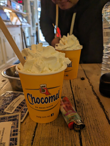 The shop is clean, well lit, ambient background music, good coffee, excellent chocomel w. slagroom they even have a dedicated Chocomel machine.