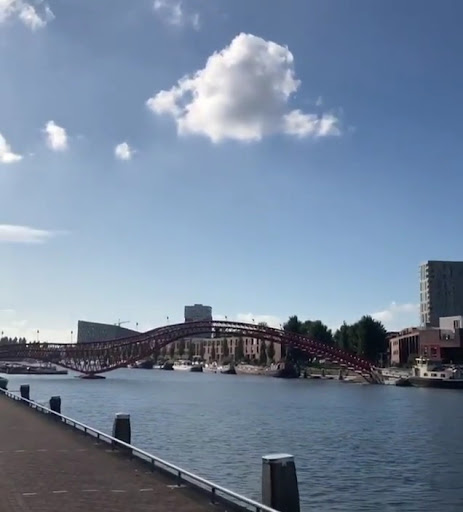 Looks very pretty and fun to walk across a "step" bridge in famously flat Amsterdam, with great views...