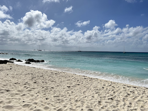 Even when it is windy on the island, this part of the beach has not much waves. Good for the kids. (obviously depends on the direction of the wind, and tide. But unlike eagle beach when there is a wind, there always very much wave to stop you jumping into the water. Alternative for kids during windy weather is palm beach). but it has strong wind on the beach itself due to locations. Also recently, people's bags got stolen so watch out your stuff when you are there. There are polices officer drive around as well. Btw, when you arrive, there are always people try to sell you the shade and comfort, remember chairs you pay for. But those palapas are free to use. If you are economical as me, then just lay down on a towel under one of the palapas :) -...