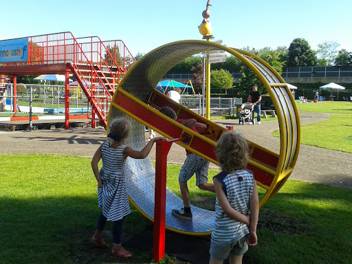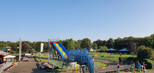 Grote speeltuin voor de iets grotere kinderen vanaf groep 3-4 zou ik zeggen. Kabelbaan, een piraten eiland, trampolines, een kartbaan tegen betaling, trap-bootjes, een superhoge glijbaantoren waar je met matjes vanaf kunt glijden, een midgetgolfbaan tegen betaling en een heleboel speeltoestellen!