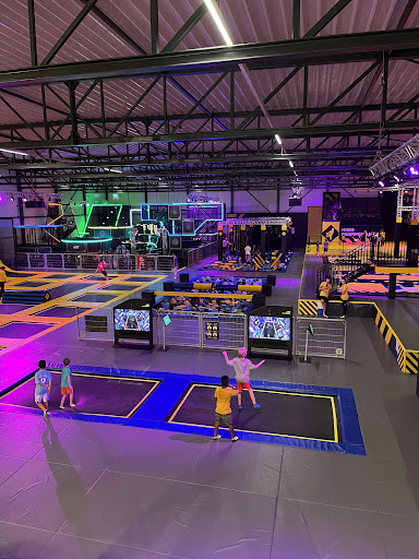 Een groot trampolinepark met wat extra features t.o.v. de wat kleine parken. Wel blijk je voor het Ninja gedeelte (eenmalig) extra te moeten betalen: 2,- pp. Jammer dat dit überhaupt niet gemeld is bij de kassa. Het zitgedeelte, zowel beneden als boven, ziet er prima uit maar wel nauwelijks daglicht (helaas bij bijna alle trampolineparken) en wat ik echt een minpunt vind, is dat er maar heel weinig stoelen zijn met een rugleuning. Als je als begeleider zo'n 2,5 uur zit te wachten, zou het fijn zijn als je op z'n minst lekker kunt zitten; dan zijn die picknicktafels of hoge krukken met een halve leuning niet fijn. Ook heb ik tijdens de 2,5 uur niet één keer een medewerker op de bovenetage gezien; aangezien er ook geen afruim/vaat-trolly is waar je het zelf kwijt kan, blijft de vuile vaat dus eindeloos voor je neus staan. Ook de toiletten werden niet gecontroleerd; na een aantal kinderfeestjes was het wc-papier bij de dames op en was het enigszins vies. Het personeel dat er wel was (beneden dus), was vriendelijk. Het bestellen via het scherm vond ik irritant omdat je steeds moet bevestigen dat je iets NIET wilt. Normaalgespoken klik je aan wat je wilt en plaats je het in je winkelmandje en kun je afrekenen, maar hier kwam er steeds een veld bij met allerlei extra's en pas als je klikt op 'geen deal' , kun je verder. Bij 1 kopje koffie is het dus zoiets als koffie-ja, slagroom-geen deal, appeltaart-geen deal, smaaksiroop-geen deal, voor dat je eindelijk kunt afrekenen. Klantonvriendelijk systeem dus. Gelukkig kon je ook gewoon aan de balie bestellen. Wachttijd voor het eten viel alles mee, ook de drukte in het algemeen (een zondagmiddag, eind januari). Fijn dat er ook iets gezonds op de menukaart stond (groenten snacks). Helaas smaakte het brood naar handcrème; daar zou in de keuken op gelet mogen worden. Al met al prima om eens naar toe te gaan. Let dan wel op het parkeerbordje; die staat bij de ingang waardoor je net te laat beseft dat je aan de overkant moet parkeren. Het parkeerbordje wat eerder op de weg plaatsen, zou net wat...