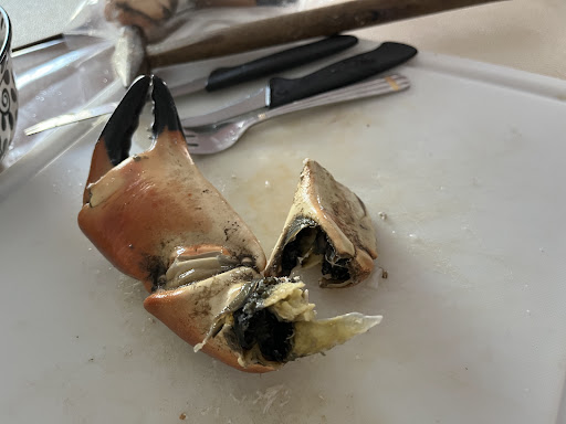 26,5 euro voor een kinderportie mosselen (prijzen niet vooraf vermeld) die je op een houten bank tegen de straat mag opeten is er los over. Dat er eerst een fout in de bestelling geslopen was kan gebeuren… Je betaalt de prijs van een ‘normale’ portie mosselen in een etablissement aan de haven zelf. De mosselen op zich waren (eerlijkheidshalve) zeker niet slecht. De krabbenpoten waren ondermaats! Veel te zout en duidelijk niet meer vers. Bij aankomst thuis vol verwachting er aan begonnen was de onvrede redelijk hoog. De poten nochtans onmiddellijk in een voldoende gekoelde frigobox ondergebracht. Een aanfluiting en een echte schande noemt men dat. Speciaal naar Yerseke gereden om daar de meest verse producten uit de zee te kunnen vinden en uiteraard ben je dan bereid om daar een correcte (iets duurdere) prijs voor te betalen. Dit kan echt niet (zie foto’s...