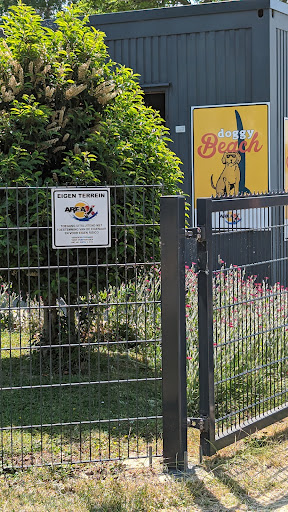 We waren er rond 12.00u dus op tijd. Het terrein is trouwens geopend van 11.00u tot 18.00u. Moet wel gezegd worden dat het terrein niet echt groot is, in vergelijking met de andere waterstranden in de nabije omgeving. En dan loop je al gauw tegen het probleem aan dat diverse honden het dan op jou hond zijn speeltjes hebben gemunt. Niks mis mee. Maar dan moeten de andere baasjes wel hun verantwoording nemen, en hun hond bij zich roepen. Dus als je ernaartoe wilt gaan, neem dan ook je verantwoordelijkheid voor je eigen hond. Zo kan een ieder met zijn hond genieten van dit hondenstrand. En niet vergeten de boodschap van je hond op te ruimen. Zijn voorzieningen voor. Is trouwens ook een toilet, en je kunt je handen ook wassen.