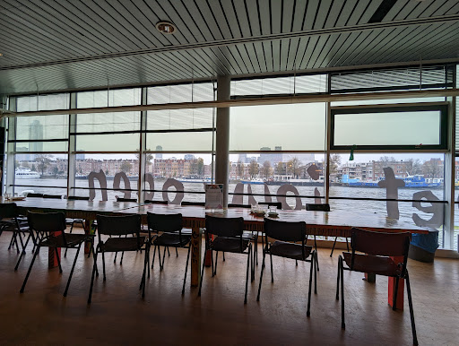 Boven is een workshopruimte waar projectmatig bomen worden versierd met verschillende objecten, je kon er boomhutten knutselen, groene slingers rijgen en en bloemen maken. Als je kinderen van knutselen houden is dat leuk, maar het is los van het idee niet meer dan je zelf thuis zou kunnen doen. Ook de "begeleiding" viel tegen, die zaten op een bankje langs te kant gezellig met elkaar te kletsen. Verder is het een kille lege ruimte waar veel meer uit te halen is. Misschien dat de gordijnen dicht hangen vanwege de warmte maar gezelliger wordt het er niet op. Je hebt wel prachtig uitzicht op het water, de Rotterdamse bruggen en het Noorderleiland. Daar is meer uit te halen!