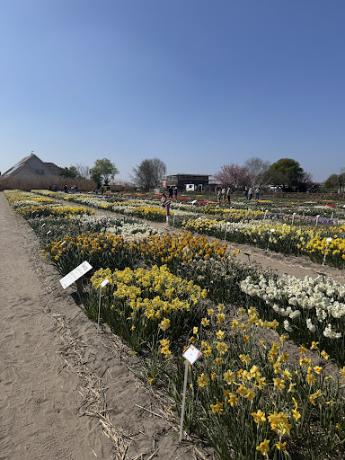 Cutest little tulip farm! Much smaller than others we went to, but also a better experience! The road to get there is very narrow, so while we drove and they do have parking lots, it would be best to bike in (it would be a far walk). When you walk in, there are baskets of Dahlias to buy, also some cute vintage items for sale as well (including vintage delft!!) and then you get into the cafe area and the actual shop. The shop has very cutes items for sale and the cafe has tulip beer and a tulip spritz (so good!!) which you can walk with in the gardens outside. The gardens are not really the vast sprawling fields, instead having hundreds of different varieties of tulips, daffodils, and hyacinth, all with name tags so you can find your favorites! They are have a few multi color rows where you can ask to pick your own tulips (10 for €7.50) and they will tell you how to pick the good ones! They have lots of outdoor seating and it is all so cute and well curated for a great atmosphere. There is also a burger food truck which we did not eat at, but smelled amazing! Every employee we spoke to was so kind and helpful, even with our language barrier (Dutch is really hard, English is really hard, we all did our best!). This is overall such an amazing experience and it feels a lot more intimate and intentional than other places we’ve been, we...