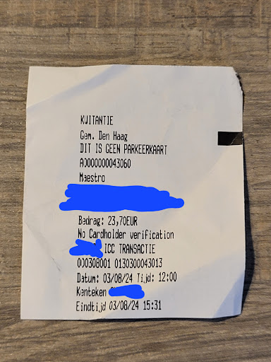 Der Automat versteht nur Niederländisch und das Display ist sehr, sehr dunkel. Bei starkem Sonnenlicht erkennt man kaum etwas. Jeder Bezahlvorgang vor mir fühlte sich wie 5-10 Minuten oder länger an – viel zu lange.