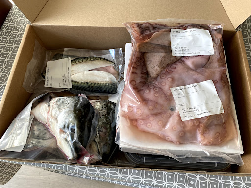 Zaterdag kreeg ik een briefje in de bus van een mevrouw dat een straat verderop woont, dat de krab bij haar bezorgd was omdat ik niet thuis was. Maar ik had geen bericht van levering ontvangen. Ik ben de doos op gaan halen en de dame bij wie het bezorgd was, was erg blij en zei dat ik iets lekkers had besteld. Ik vond dat raar. Hoe wist zij dat nou? Maar heb de doos in ontvangst genomen.