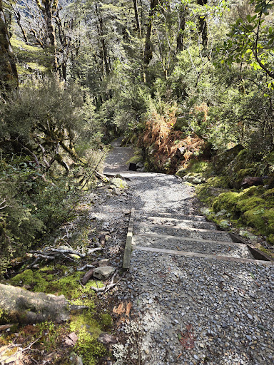 Upon arrival at Arthurs Pass, Tim took us in the van to a great hiking place for a 45 minute hike. As I have a bit of a knee problem I stayed behind and Tim was kind enough to entertain me with a few sites along the way to meet up with the hikers. One stop was a beautiful chapel with a waterfall view out a big picture window.