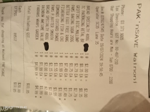 Read moreThis store has zero regard for the needs of customers. They have plastic bags in the meat section for customers to take to put their meat in their freezer, we took a few for our meat, then when we were doing the self checkout a woman staff member said that taking the bags is stealing, I couldn't believe it, they have the bags for customers to use but when you take them they say it's stealing, I thought this woman must be some sort of neurotic so I didn't take any notice, but as we were passing the security guard near the checkouts he asked us what we were taking the bags for so we said it's to put our meat in, he said it's stealing and we should buy bags, I said it's ridiculous, the bags are there for customers to use and we shouldn't have to buy them, so he took the few bags off of us. It's obviously what the management is telling them, absolutely ridiculous. They also throw away tons of boxes that they could have at the front for customers to use for their groceries, but they don't do that because they want us to buy their rotten useless bags, trying to scrounge every cent they can at the expense of customers, making it very difficult for us customers to carry and transport our groceries. They are clearly displaying absolute disregard for the needs of customers, which is zero customer service. I recommend avoiding that place. I didn't want to give one star because I hate the way they are treating us human beings that are also their customers. It's now the end of July, a few months after, and they still don't have empty boxes at the front for customers' use, so they don't read 'maps' or don't care what their customers think, probably the latter. In fairness, at least they have plastic bags and tissues in the meat section, so they have some consideration for customers so I give 1 star, not like other Pak n Saves in Christchurch that don't give bags,...