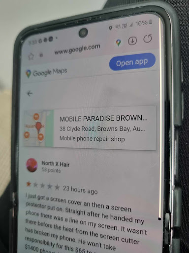 Read moreI just got a screen cover an then a screen protector put on. Straight after he handed my phone there was a line on my screen. It wasn't there before the heat from the screen cutter or the staff member pressing down hard on my phone screen has broken it. He won't take responsibility for this $65 to now break my $1400 phone! Absolutely gutted--