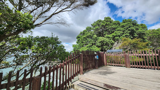 A great spot to look out Orewa and its surrounds. If you look to your right you'll see beautifully Orewa note the leaky Nautalus - no matter when you read this they will probably still he fixing it, if you look out to your left you'll see Whangaparoa stretched out in the distance. If you turn around and if you could see through the wall you would be looking at Eaves Bush - a great hidden forest with lots of Kauri and steps - very peaceful. If you look down you can see the nearest loo - first right at the bottom of the hill and if you look carefully you can find the second lookout spot - older and lower, a picnic bench, and maybe even a bunker. Happy meandering...