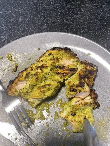 The way the chicken breast was scored led to a PERFECT cook. Legitimately impeccable for the first time in my experience cooking chicken breast. Juicy, tender and melt in your mouth like... could've been chicken thighs, that's how good it was! Nawabi was the marinade we chose, and it was basically like Malai Tikka. Mild yet richly flavourful. Lots, too.