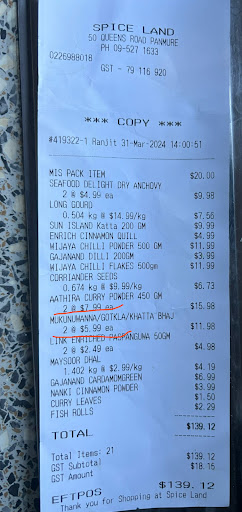 [* update after my initial comment *] Glad the Spiceland replied me less than 24 hours with a contact number and when I reached them, Ruban proactively resolved the issue at the same time. The way they handled complain changed my perspective towards the shop and their customer care. Now I’m editing the same review and posting as a happy customer again. With this I will change my ratings from 1 STAR to 5 STARS in here as well. please check my initial issue down below if anyone is interested on what happened. ⬇️ **====== Please check items at your checkout, if you keep your eye-out from goods and busy packing items without checking the POS machine’s total, you will be cheated (especially when you have a large number of items) . I was busy with baby and they have billed the same items twice (which i have highlighted red) and i only understood that coming to home. My bad, thinking them like other supermarkets in New Zealand, which helped them to cheat $14 almost from this bill. Not...