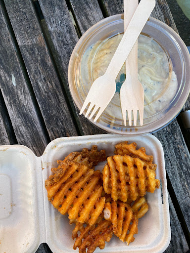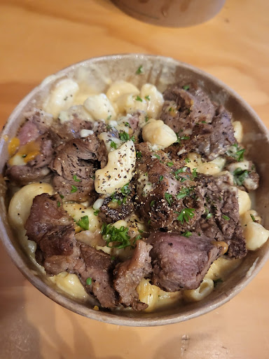 Read moreI got the mac n cheese, the juicy beef burger and the popcorn chicken w chips. The mac n cheese for $10 was a solid size. It's a one note dish but it's not bad. I think if there was a deeper or even sharper cheese it would give it more complexity. Even some chilli would go along way. But for $10 I'm not complaining at all. The juicy beef burger imo is whatever the American burger at Burger Fuel should've been. I just think they need to change the buns bc the brioche can't hold the sauce well enough n gets soggy. Otherwise toasting the heck out of the brioche might also work. The popcorn chicken and fries NEEEEEDS a different contain3r OR needs to be rested longer. Bc of the lack of air exposure in the container, the chicken doesn't get to become crispy. And the chips being squished under it also doesn't allow for them to become crispy and almost gives the texture that they're old even though you just received them. Anyway, I'd say it's a solid dinner the same way fish and chips are. It's pretty no fuss food but absolutely could do...