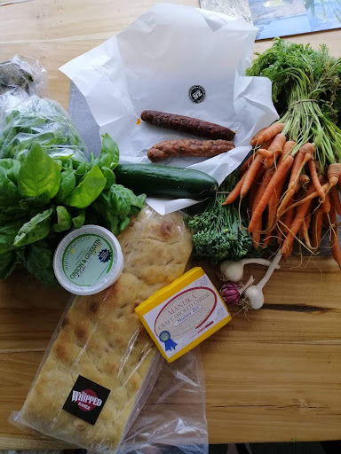 It’s pretty small, a couple of local businesses including a nut butter/granola, kombucha, dried mushrooms and healthy sweet treats mixed in with 2-3 bakeries, 2 meat delis, 2-3 food stalls, free range eggs, coffee carts and small fruit/veggie stands.