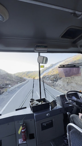 We were the first people on the first bus of the morning. The journey out was fine. Nice bus, though the seatbelts were faulty.