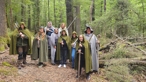 We also were able to dress up with some props and costumes in the woods where the magic of LOTR really happened. Just by happenstance, there were 9 of us - our own Fellowship of the Ring.