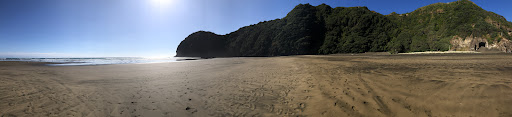 North Piha Beach also known as Kohunui Bay (sea mist) is a quieter option from the craziness that the main beach affords. There is a car park at the end of the road with lots of overflow parking on the side of the road. Next to the carpark is a nice mowed field great for bbq and family picnics and field games etc. Past the field a track will lead you to the beach, if you walk towards the head there are a number of caves and pohutukawa trees for shade and at low tide there is usually a 3m deep pool for swimming with no waves. From this area you can walk over up the head along the Laird Thomson track or to White’s Beach, there is some nice fishing if you walk along the coastal route of the head. There is no surf rescue out here and swimming is at your own risk, you may see no swimming signs on the beach but realistically it’s just a deterrent to stress the caution one must use at Piha, which is one of New Zealand’s most dangerous beaches. However surf rescue does often ride out here with their quad every couple of hours. Best rules when swimming outside of patrolled areas is know the conditions as posted at surf rescue, be aware of rips and know how to 1. Spot them 2. Swim out of them, keep only to waste deep, look out for deep holes, and never turn your back...