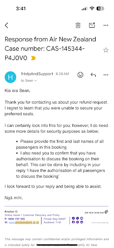 In the past I had never thought twice about paying more for an Air NZ flight and “your number 1 service” over your competitors. I promise you I will actively avoid ever having to fly Air NZ and gladly pay your competition to avoid my family feeling like they are lepers and an inconvenience for even being on your flight.