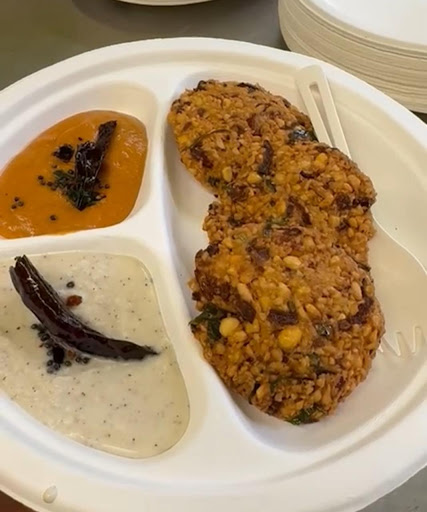 Vadas & Idlis. The idlis appear in mini sizes and can be dipped in sambhar and podi (powder) and the chutneys provided are tomato and coconut. The vadas are freshly done and when served it is hot. The taste is phenomenal.