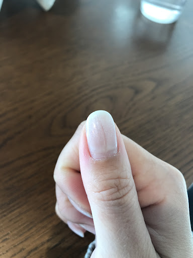 My problems were: she didn’t offer to fix or redo the scratch on my thumb nail (pictured below) but said that she would “cover it up” she mentioned that there was a better way to do the ombré with SNS powder at the END of my service, after finishing the ombré gel manicure when checking the ombré gel result, I did think it didn’t look as nice as SNS powder would have given a more natural look compared to the ombré effect created with a sponge