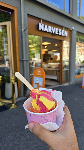 Read moreBeing on holiday in Bergen, I took kids to this shop after lunch to have an ice cream. When I was setting seats, one scoop of my ice cream dropped. I asked the salesperson to top up my ice cream with a new scoop and expected he charge me just for the gap, 6 NOK. Surprisingly he asked for 33 NOK for full payment of a 1-scoop ice cream. When they saw how stunned I am, the manager intervene with a gesture of kindness and charge me at half price of a full payment, 16 NOK. This level of green was not compatible with my experience I had so far in Bergen; and I had never ever seen such behaviour in last 13 years living...