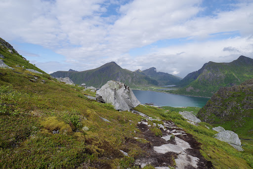 Der Einstieg ist 500m vom Campingplatz entfernt. Wie fast überall auf den Lofoten muss man sich auf eine gewisse Steigung gefasst machen. Die mittelschwere Wanderung ist für geübte Wanderer gut machbar.