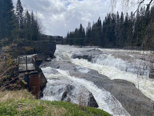 It is a phenomenal place - huge and long rapids with tons of water roaring in them, in the upper part above the rapids there is an old railway bridge on the closed line. The place is accessible by car, there is plenty of parking space...