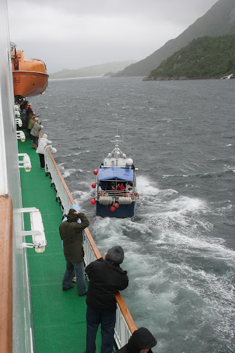 At the end of the fjord are a couple of small buildings. Our on-board guides told us there is a hydroelectric facility nearby and workers reside in...