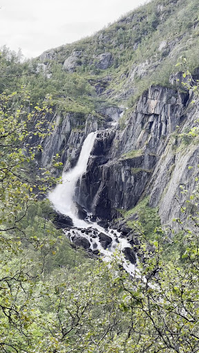 Hivjufossen is amazing natural scenery! The waterfall, which is divided into two cascades, has a height of 250 meters. This is the perfect hike to explore the amazing Norwegian nature! The trail starts right in the parking lot at road 50 and rises steeply through the birch forest up to the edge of the waterfall. Along the way, there are several views of the waterfall. From the top, you will be able to admire Hivjuvalley and the streams that descend here from Hallingskarvet. Attention, move here with caution. The surroundings of the waterfall are dangerous, even in the summer there can be light frost created overnight and the stones are slippery. There have been three fatal accidents. The power of the waterfall is huge. Hivjufossen is still completely open and freely accessible, however, the Norwegian authorities are already considering these accidents and are considering some restrictions (fencing the immediate vicinity of the waterfall) and it will be a great pity. You can go back to the car using the same trail. However, if you have time, we recommend exploring this area around. There are several trails that continue towards Hallingskarvet. There is a circular trail marked in red on the stones from the top of the waterfall. Nearby you will find Birkelund Camping, an amazing friendly campsite, an ideal starting point for hiking in the area and visiting Hivjufossen. We highly recommend...