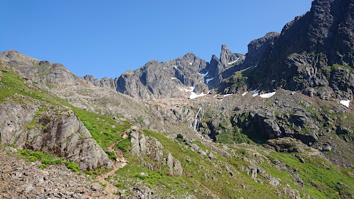 Beautiful and at the same time not popular place among tourists! True into the wild feelings. It was cloudy and a bit rainy what was the reason to cross some rivers with challenge :) From the lake last two kilometers looked quite steep and difficult but because of strong rain we had no chance to try. Otherwise hike to the lake was middle difficulty or even easy with good weather. After this lake begins black part of trek as i understood. We did this hike from parking near...
