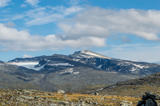 We decided to complete a loop back too the DNT via GlitterrundhĂže 2089m and RyggjejĂže 2142m. 17.2km total but we wouldn't recommend it.. extremely slow going due to the steinrĂžys/landslide rocks. Relentless bouldering on an unstable footing. It was tiring and ankle breaking waiting to happen. No signage so clearly not a recommended route, although the views were amazing and we got to experience sunset by the...