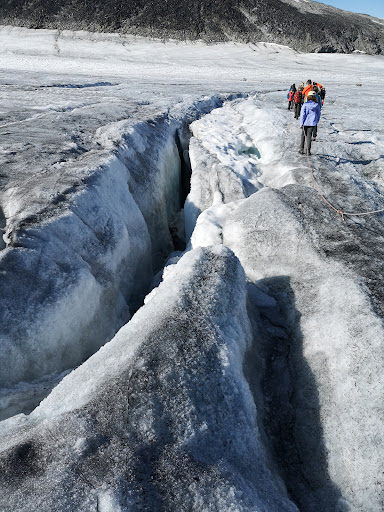 Read moreFascinerende bre, flott å forsere, dog litt vel mye mennesker da guidene fra Jyvasshytta tar med alt som møter opp. Det betyr i juli -18 at det er 120 personer i en gruppe m to guider. Uten pigger på skoene mente flere av oss at det ikke var forsvarlig. Men breen var spennende, mye over vann, mye sprekker og store mengder bekker på breen - alt...