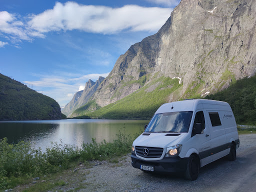 Read moreFür mich eine der schönsten Straßen in Norwegen! Kurz hinter Sunndalsöra geht es in spektakulären Serpentinen hoch aufs Plateau, dann an (Mitte Juni noch zugefrorenen) Seen entlang durch wunderschöne Fjell-Landschaft. Der Verkehr hielt sich sehr in Grenzen, wir haben vielleicht 5 Autos getroffen. Weil wir so "früh" im Jahr das waren, war die Fahrt auch angenehm abenteuerlich, in dem kleinen Tunnel lag noch zentimeterdickes, blankes Eis und am anderen Ende lag noch meterhoher Schnee neben der Straße. Abends war es bitterkalt und es hat leicht geschneit. Freistehen mit dem Camper kein Problem, es gibt an jeder Ecke Plätze. Die Straße (Maut ca. 10 EUR) ist nicht asphaltiert, aber in gutem Zustand und mit jedem Auto befahrbar (bei uns MB Sprinter). Nur mit sehr großen/langen Wohnmobilen und Wohnwagengespannen würde ich da nicht rauffahren, es gibt doch einige ziemlich enge Stellen und...