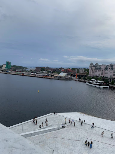 The Opera Beach (Operastranda) in Oslo is a man-made beach located near the Oslo Opera House in the Bjørvika district.