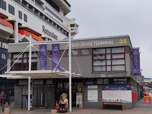 This got to be my absolute favorite Nordic/Baltic Cruise terminal shop. Located immediately at #35 in front of Akershus Castle, cruise ship docked right there. Everything is walking distance to town. Inside plenty of souvenirs, lots of clothing choices, FAST free internet.... It's a good size place. Restrooms and even Starbucks. Unlike the previous stop in Helsinki, an industrial Port with nothing nearby and a distance from town. Thumbs...
