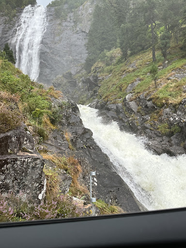 Read moreLeider kommt man nicht nah heran. Auf dem Parkplatz passen kaum mehr als zwei Autos. Ein Trampelpfad hinter der Leitplanke führt dann zum Fuß des Wasserfalls. Auch dort sehr wenig Platz und auch nicht ganz ungefährlich. Nur ein niedriger Maschendrahtzaun entlang der Felskante.