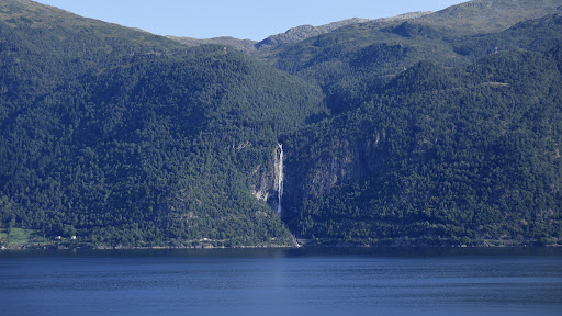 Kninnefossen oder Kvinnafossen, der Wasserfall des Flüsschens Kvinna. Kvinna, norwegisch die Frau, weshalb er oft einmal mit dem Namen "Frauenwasserfall" übersetzt wird (mir persönlich gefällt Kvinnefossen besser), wobei immer noch nicht feststeht, hat nun der Wasserfall den Namen vom Fluss oder der Fluss den Namen vom Wasserfall übernommen und was ist mit Frauen gemeint? Darüber herrscht Uneinigkeit. Was aber unstrittig ist, ist, dass dies eines der auffälligsten Wasserfälle im Hauptarm des Sognefjords ist. Besonders schön ist er bei einer Fährüberfahrt von Vangsnes nach Hella zu sehen. Aber das ist noch nicht alles. Diesem 120 m hohen Wasserfall kann man auf der Straße von Hella nach Leikanger besonders nahe kommen. So nahe, dass der Wasserfall unter der Straße hindurchfließt und auf der anderen Seite sich in den Fjord ergießt. Nun ist Norwegen nicht gerade arm an spektakulären Wasserfällen, aber dieser gehört...