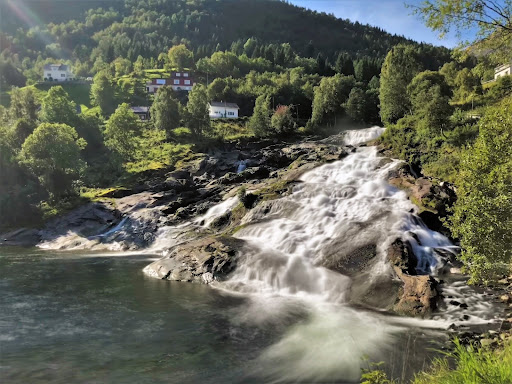 Hellesyltfossen what magical Waterfall really a must go Super nice! and what a quiet village. From here you can take a ferry...