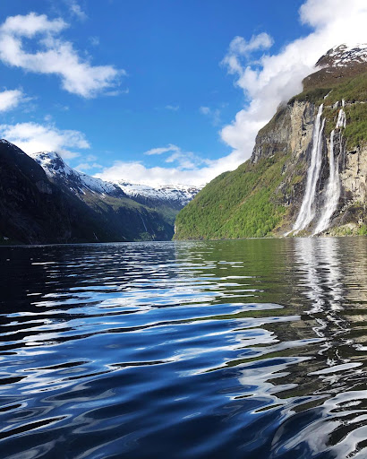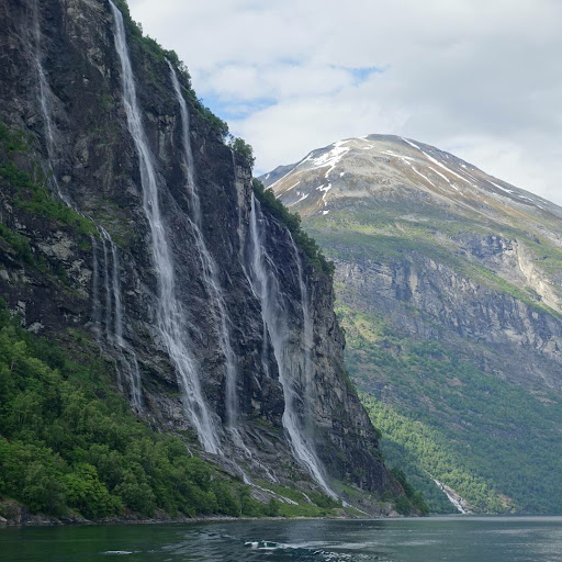 The "Seven Sisters" are among the most photographed waterfalls in Geirangerfjorden. They are close to Knivsflå, the abandoned farm. No less than seven waterfalls descend into the fjord. They have an average fall of around 250 meters and are an impressive sight when the water levels are high. The water level is dependent on the snow thaw and precipitation and may affect whether it is possible to see all seven falls equally clearly. The falls are naturally more visible during the major snow melting period in May-July and can be best observed by taking a boat trip on Geirangerfjord. The legend has it that the "Seven Sisters" were all unmarried, and the waterfall on the other side of the fjord has been called "The Suitor" after several unsuccessful attempts to court the sisters. If you want to see all the sisters and their suitor it is probably better to go when there is the greatest flow of water, such as when there is snowmelt in spring. Even if you do go when there are less sisters, don't worry - they are still...