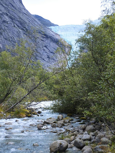 Il Briksdalsbreen o meglio conosciuto come ghiacciaio di Briksdal, è uno dei ghiacciai più conosciuti e accessibili del ghiacciaio Jostedalsbreen, ed è parte del suo parco nazionale. Si trova nella municipalità Oldedalen di Stryn e ai piedi del sentiero che conduce al ghiacciaio troviamo il Briksdalsbre Mountain Lodge, che è un negozio di souvenire con zona ristorazione, nonchè ultimo punto accessibile con i propri mezzi di trasporto o pubblici e da lì addentrarsi lungo il sentiero naturalistico che costeggia il torrente del ghiacciaio, fino ad arrivare al Briksdal. Il sentiero è lungo 3Km e in salita, è avvolto dal verde e dalla bellezza che regala il torrente con i sui colori e le sue travolgenti cascate. Il percorso naturalistico è possibile farlo interamente a piedi o trasportati dai Troll Car che ti accompagnano fino ad 1Km dal ghiacciaio, l'ultimo tratto va fatto a piedi. La vista del ghiacciaio Briksdal con quel suo azzurrino dovuto all'ossigeno immagazinato nei sui cristalli e del lago verde turchese ai suoi piedi, è veramente mozzafiatante, una meraviglia della natura unica nel suo genere. Vale la visita. Consiglio vestiario idrorepellente con copertura anche per la testa e scarpe da Trail in gorotex. Siamo in un sentiero di montagna fra torrenti e cascate, il percorso in alcuni tratti è scivoloso e quando si passa dalle cascate ci si bagna, il meteo varia rapidamente. Il punto ristoro è ben organizzato e i piatti che servono sono tipici del luogo e molto buoni, il...