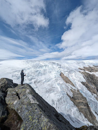 I went to this place on a great summer day in 2021. Started out at about 7 am in the morning. The parking at Buer is about 150 kroner and there is a sign pointing towards Reinanuten near the parking. You start in steep uphill terrain in a forest area and this steep terrain continues more or less all the way. There is a 1000 meter climb from the parking to the top so be prepared to walk slow. After a while you come out of the forest and get better views of glacier lakes, Folgefonna glacier and the Buer valley. At the top there is cairn (varde) that marks the top. Walk a bit further to get closer to where the glacier meets the mountain. Note that it is not recommended with hikes on the glacier without a guide. Remember to bring some water and some snack. It is about 5 km...