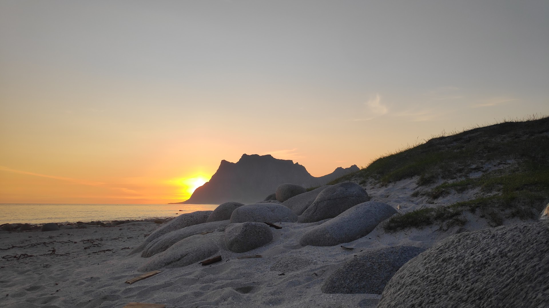 Bonus : le lieu est IDÉAL pour un soleil de minuit ! (En tout cas, en mi-juin) avec un joli (coucher ?) de soleil sur la montagne à l'est dans la soirée.